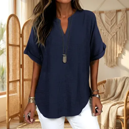 Diese locker geschnittene Bluse mit V-Ausschnitt ist dein neues Must-have – schlicht, stilvoll, bequem und vielseitig kombinierbar! ✨